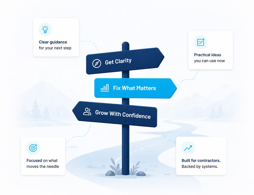 The Revenue Diagnostic is for contractors who already have momentum but want to understand exactly where their growth is stuck. It goes deeper — examining your lead flow, sales process, pricing, and retention to surface the highest-leverage opportunities.